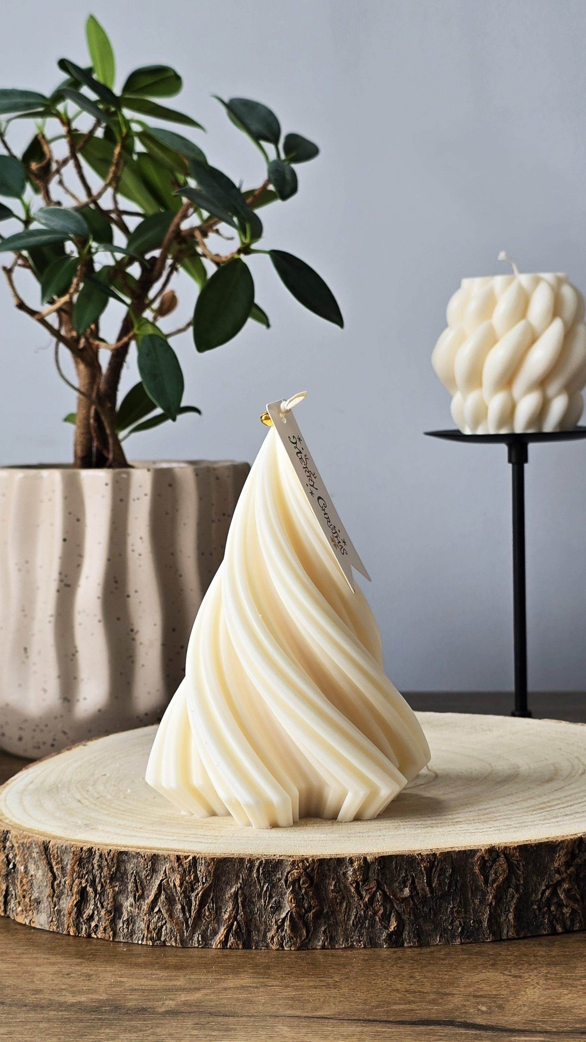 Bring holiday elegance to your home with our eco-friendly, handcrafted spiral tree candle.