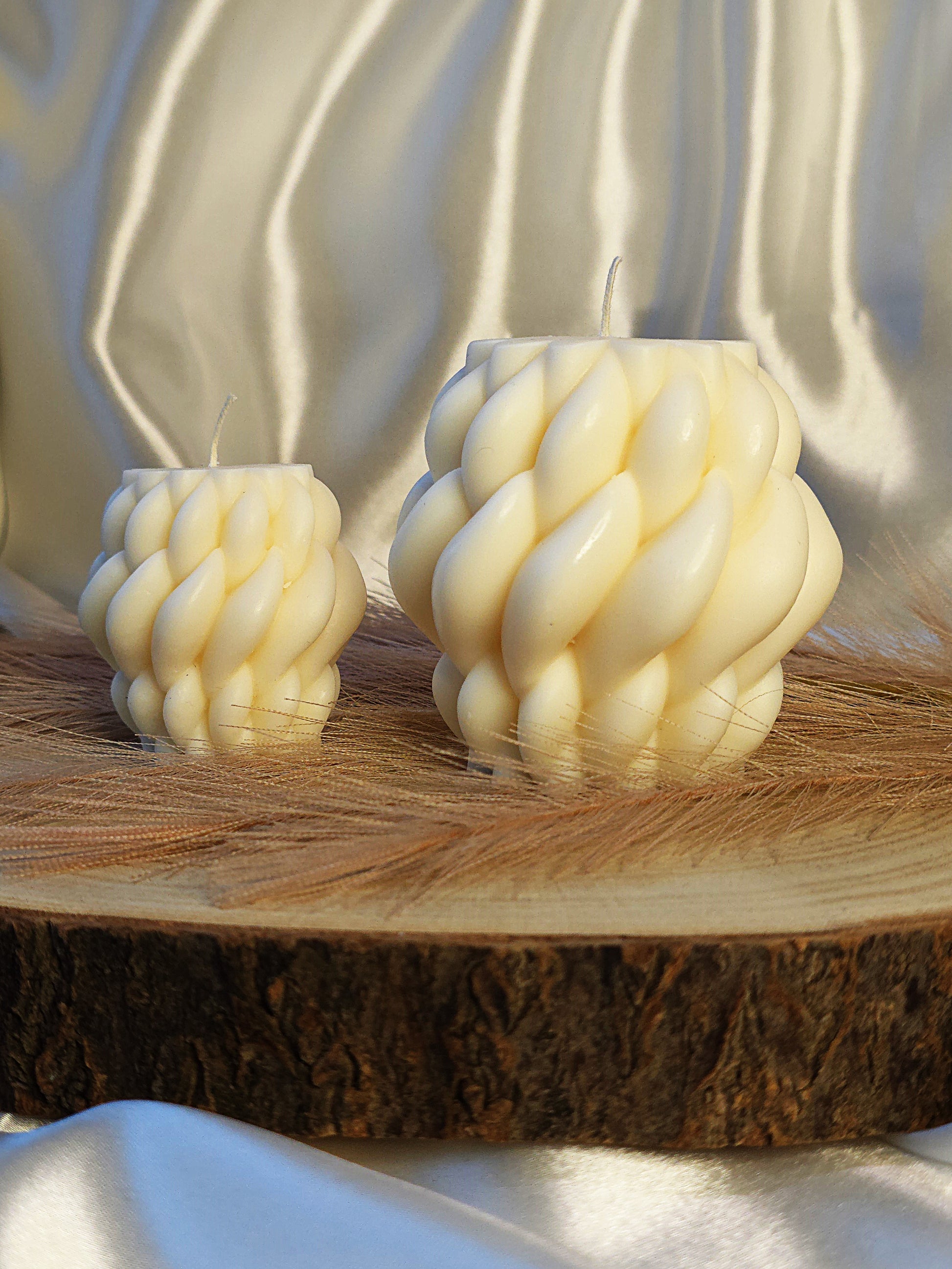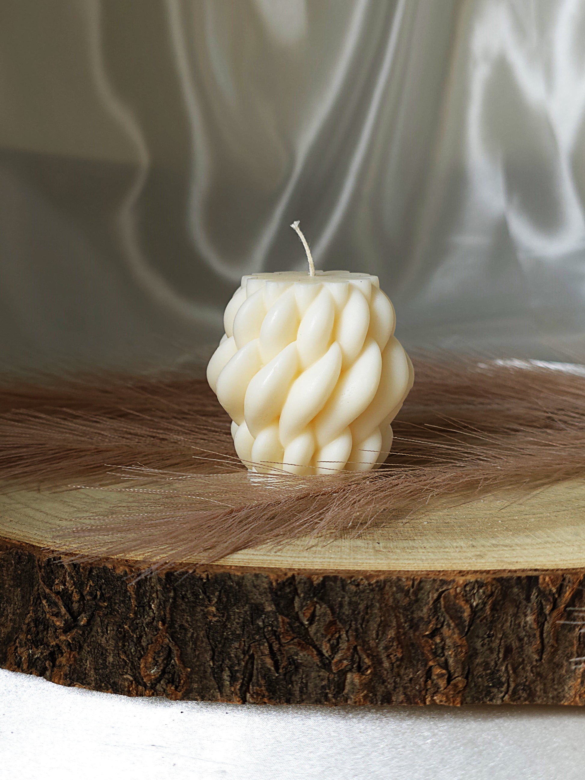 The elegant Twist of Serenity candle, crafted from natural soy wax, captivates with its unique braided rope design.